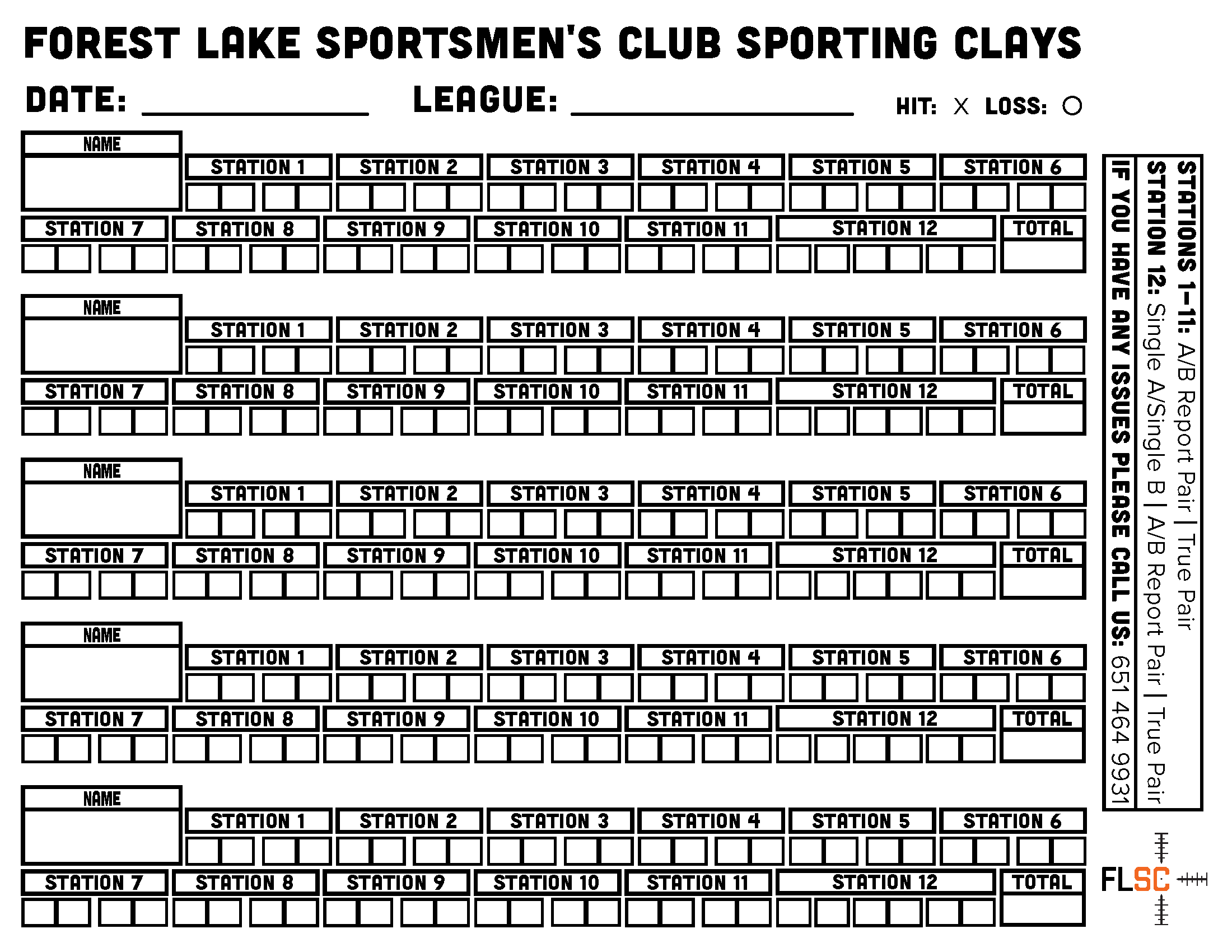 In the summer of 2023, FLSC changed its Sporting Clays course from a 10-station to a 12-station course and needed a new scorecard designed to support the change.